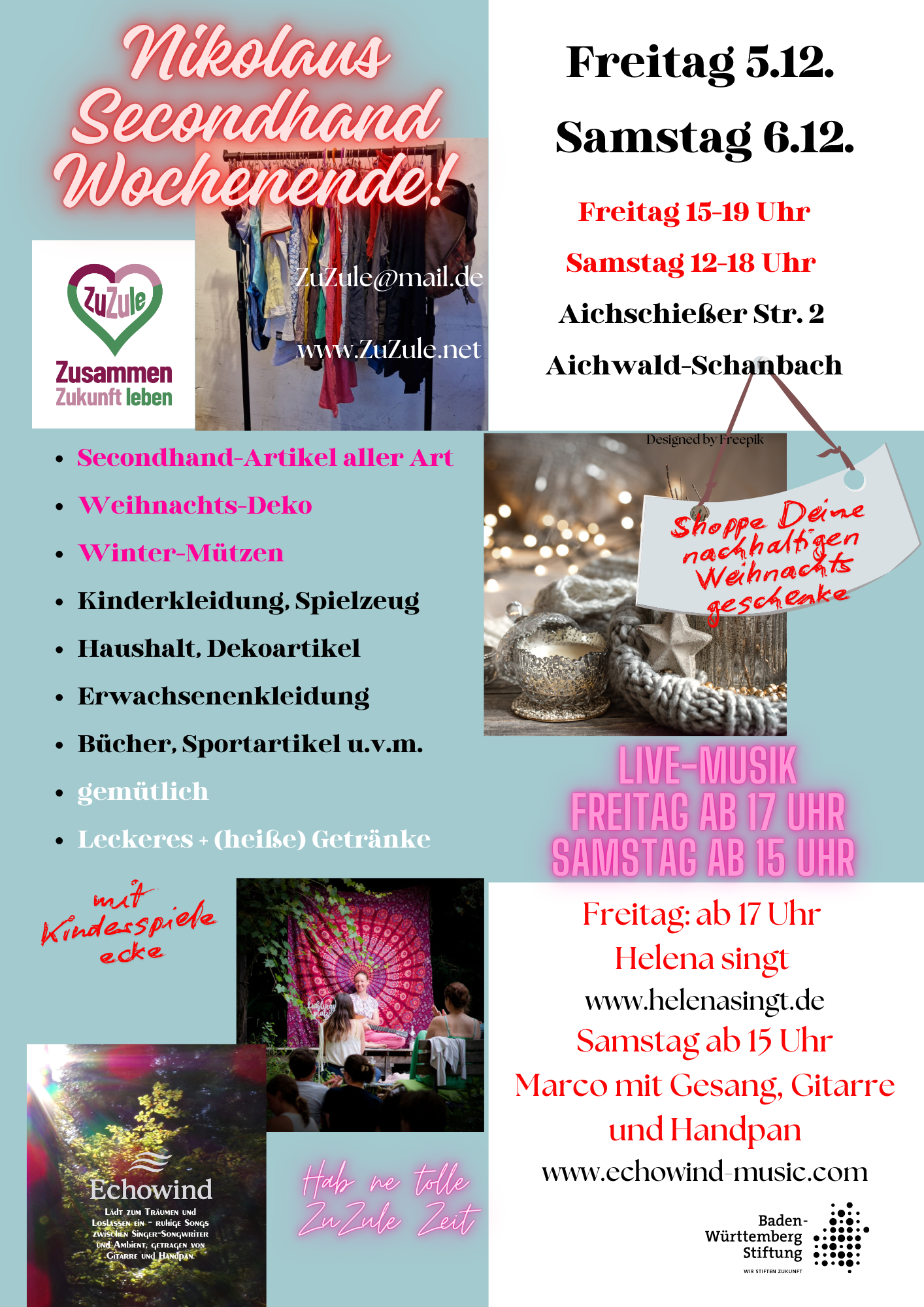 > gemütliches Nikolaus Secondhand Wochenende mit 2x Live-Musik Fr 5.12. u Sa 6.12.